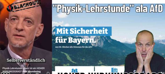 Was er sich da an alternativen physikalischen „Fakten“ zurecht fabuliert, ist kaum zu ertragen. Und das Schlimmste ist, er wird von AfD-Anhängern auch noch für diesen Unsinn gefeiert! Ich unterziehe seine Physik-Lehrstunde in diesem Video einem Faktencheck!