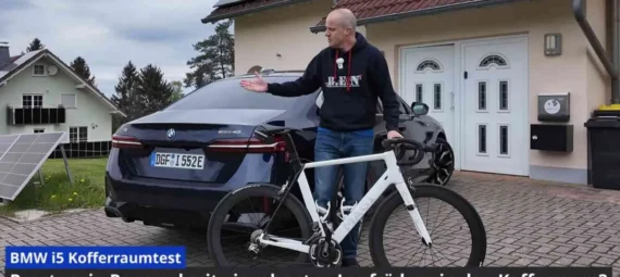 Ich habe aktuell einen voll ausgestatteten BMW i4 eDrive40 zum Testen vor der Tür stehen. Da ist es natürlich selbstverständlich, dass ich auch meinen routinemäßigen Kofferraumtest mit meinem Rennrad durchführe.